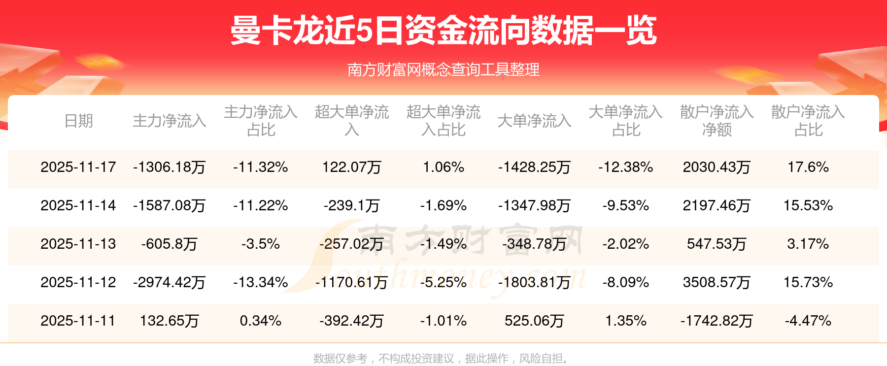 资金流向数据方面,11月17日主力资金净流流出1306.18万元,超大单资金净流入122.07万元,大单资金净流出1428.25万元,散户资金净流入2030.43万元。