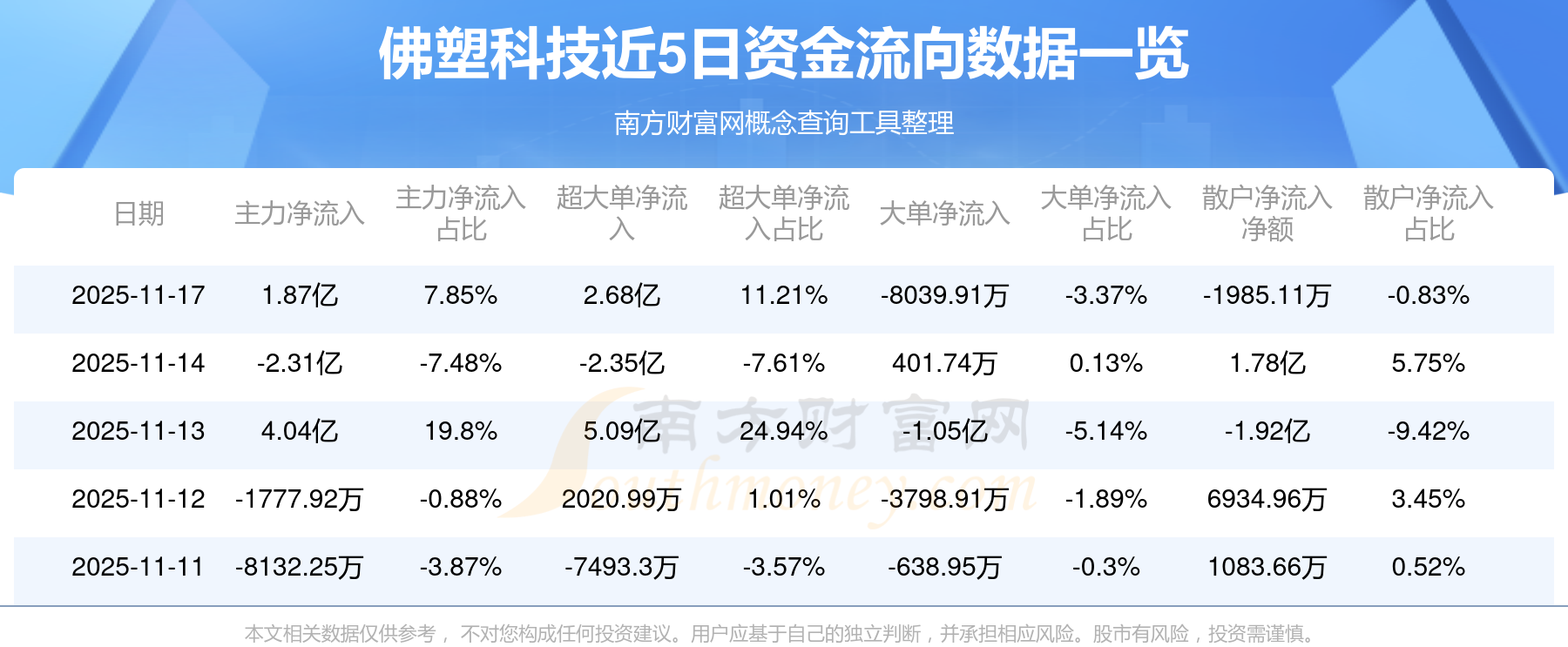 11月17日该股主力净入1.87亿元,其中资金流入方面:超大单净入5.95亿元,大单净入6.32亿元,中单净入5.48亿元,散户净入5.7亿元;资金流出方面:超大单净出3.27亿元,大单净出7.12亿元,中单净出7.15亿元,散户净出5.9亿元。