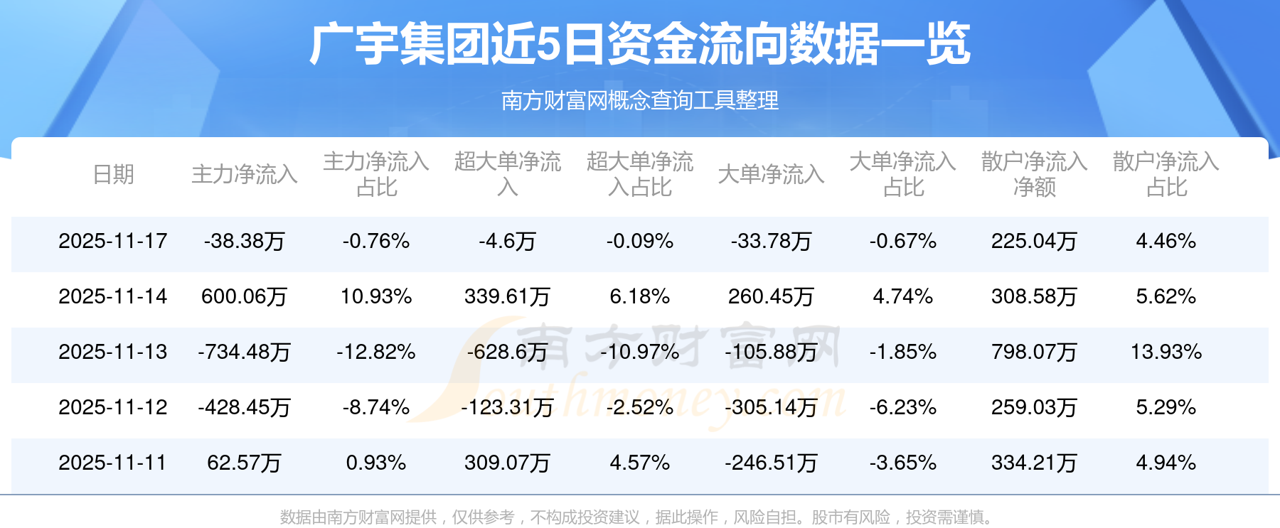11月17日消息,资金净流出38.38万元,超大单净流出4.6万元,成交金额5472.04万元。