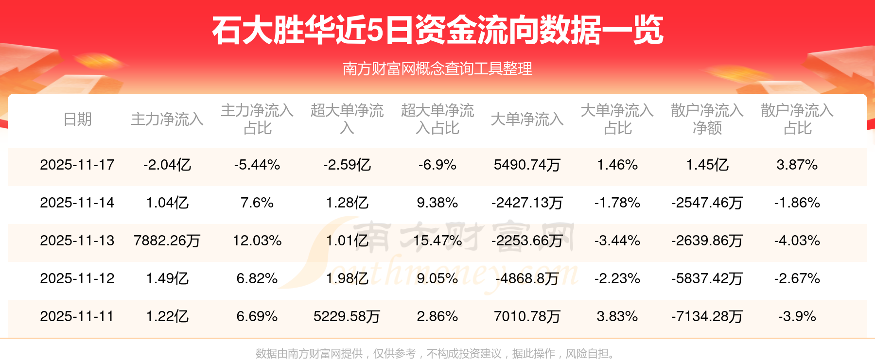 近5日资金流向一览见下表: