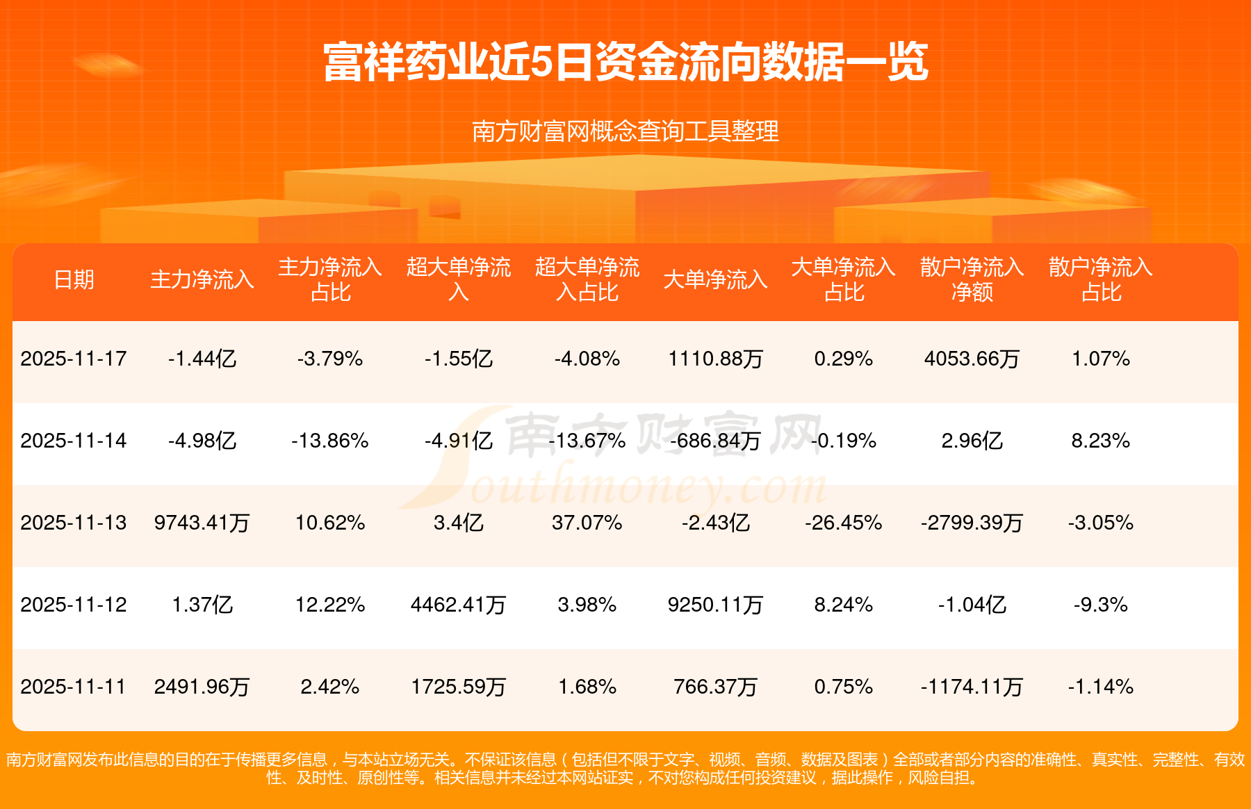 11月17日消息,富祥药业主力资金净流出1.44亿元,超大单资金净流出1.55亿元,散户资金净流入4053.66万元。