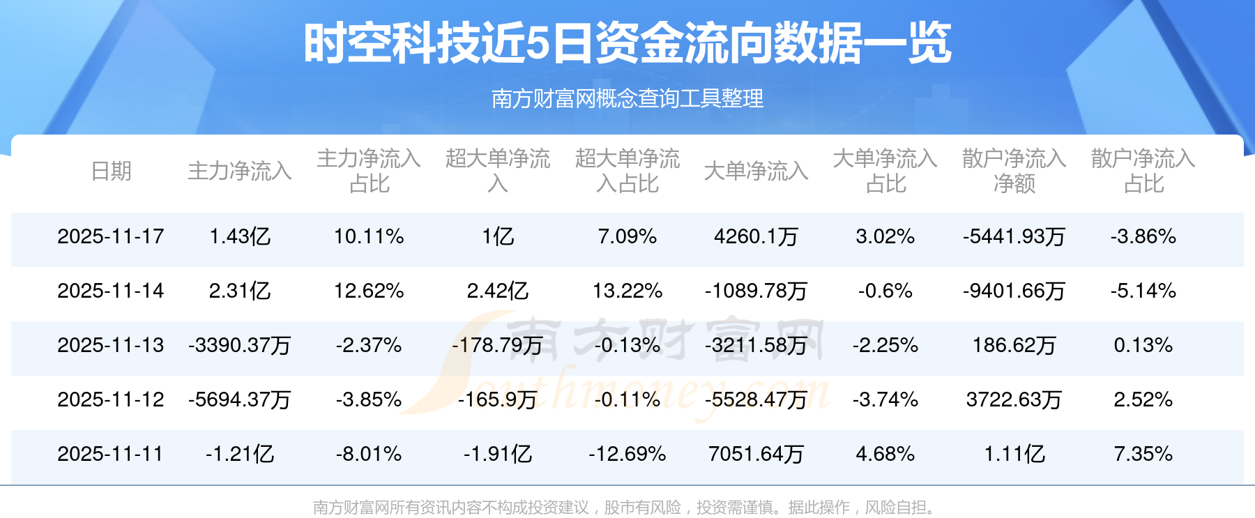 11月17日该股主力净流入1.43亿元,超大单净流入1亿元,大单净流入4260.1万元,中单净流出8831.25万元,散户净流出5441.93万元。
