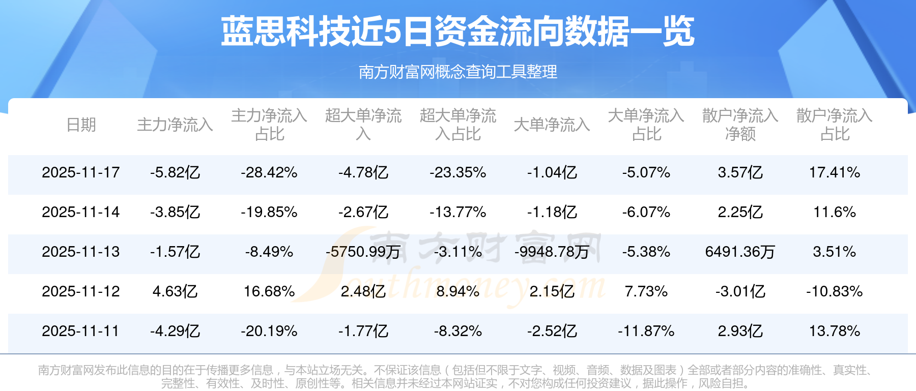 近5日资金流向一览见下表: