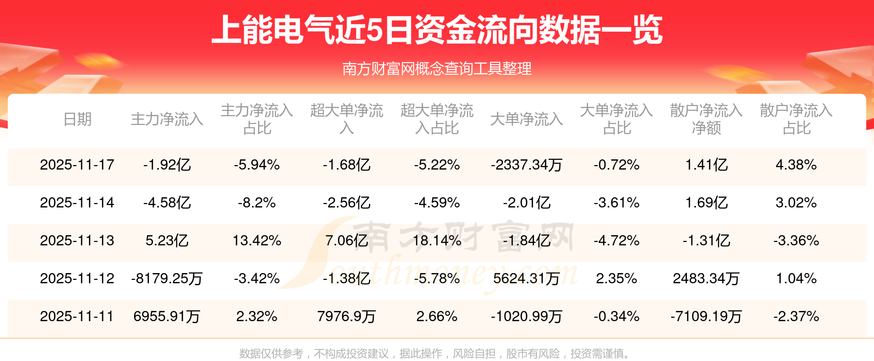 近5日资金流向一览见下表: