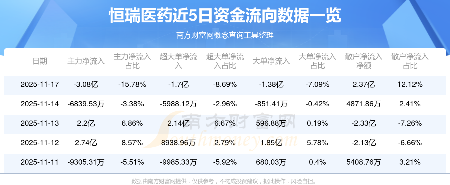 11月17日该股主力净流出3.08亿元,超大单净流出1.7亿元,大单净流出1.38亿元,中单净流入7136.12万元,散户净流入2.37亿元。