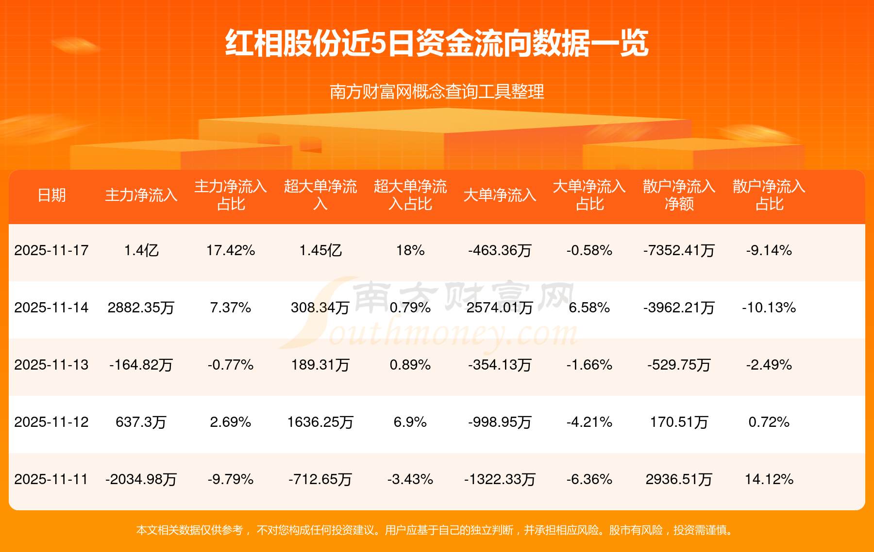11月17日消息,资金净流入1.4亿元,超大单净流入1.45亿元,成交金额18.66亿元。