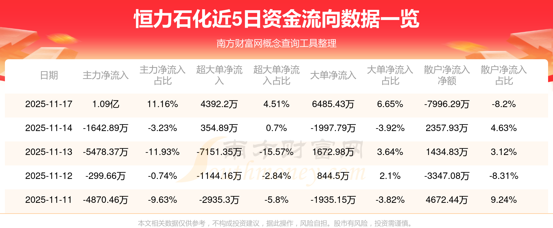 11月17日该股主力净流入1.09亿元,超大单净流入4392.2万元,大单净流入6485.43万元,中单净流出2881.34万元,散户净流出7996.29万元。