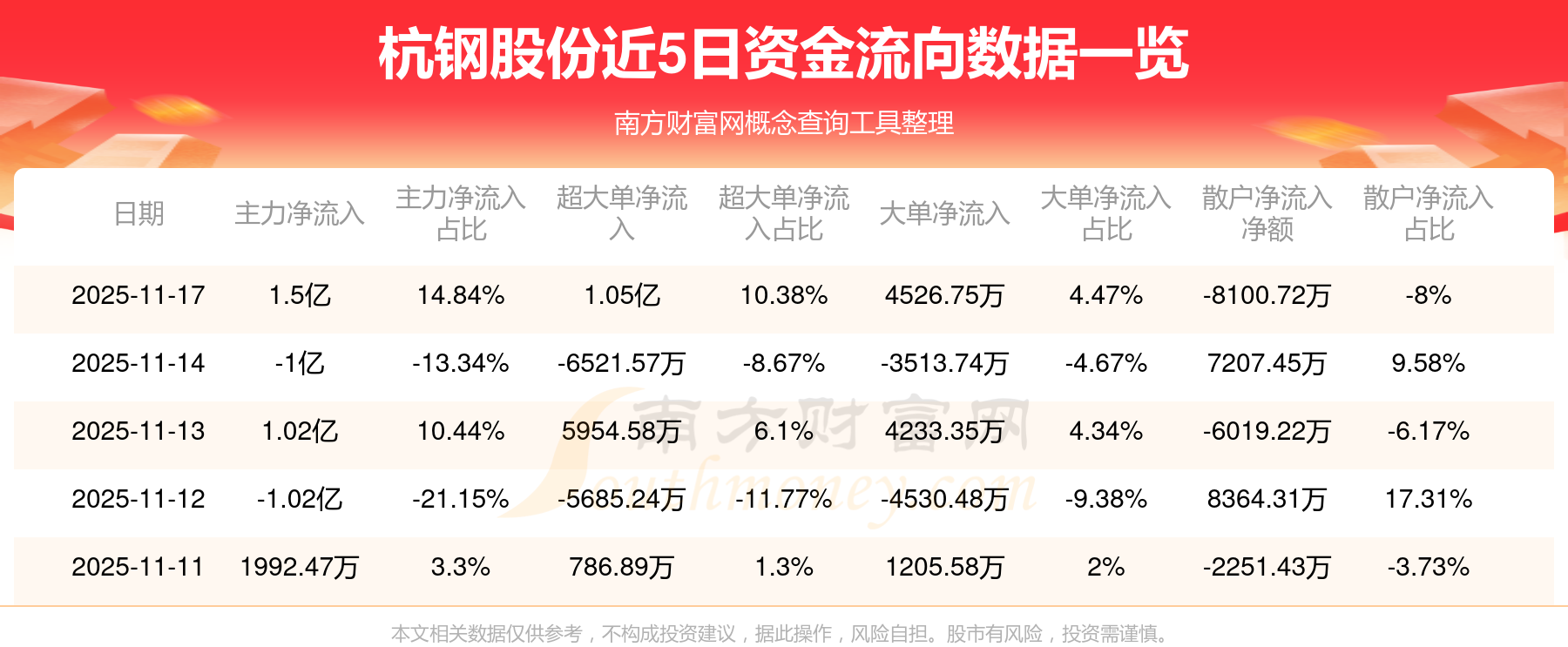 资金流向数据方面,11月17日主力资金净流流入1.5亿元,超大单资金净流入1.05亿元,大单资金净流入4526.75万元,散户资金净流出8100.72万元。