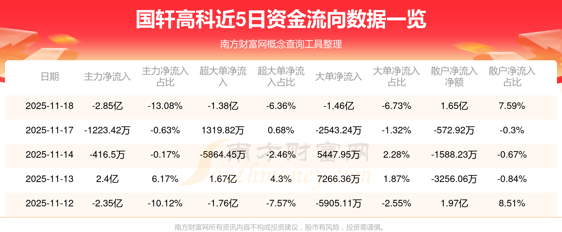 11月18日消息,资金净流出2.85亿元,超大单净流出1.38亿元,成交金额21.77亿元。