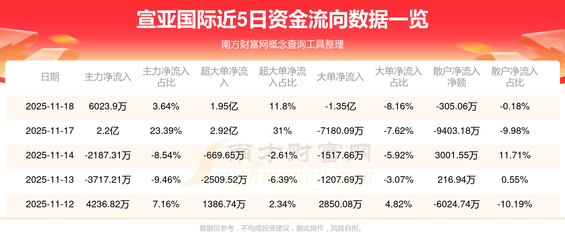 11月18日消息,宣亚国际11月18日主力资金净流入6023.9万元,超大单资金净流入1.95亿元,大单资金净流出1.35亿元,散户资金净流出305.06万元。