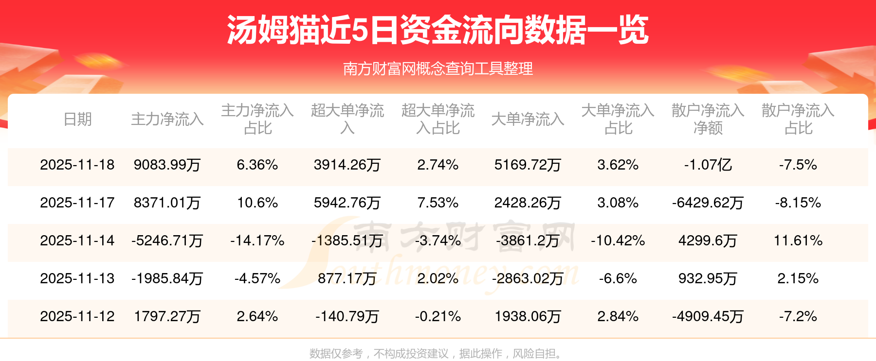 11月18日消息,资金净流入9083.99万元,超大单资金净流入3914.26万元,成交金额14.27亿元。