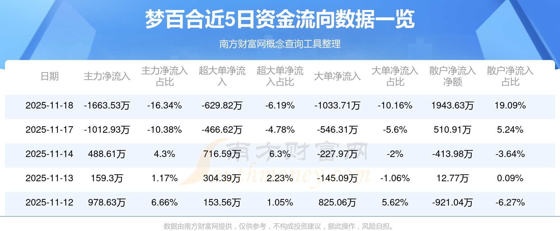 11月18日消息,梦百合主力资金净流出1663.53万元,超大单资金净流出629.82万元,散户资金净流入1943.63万元。