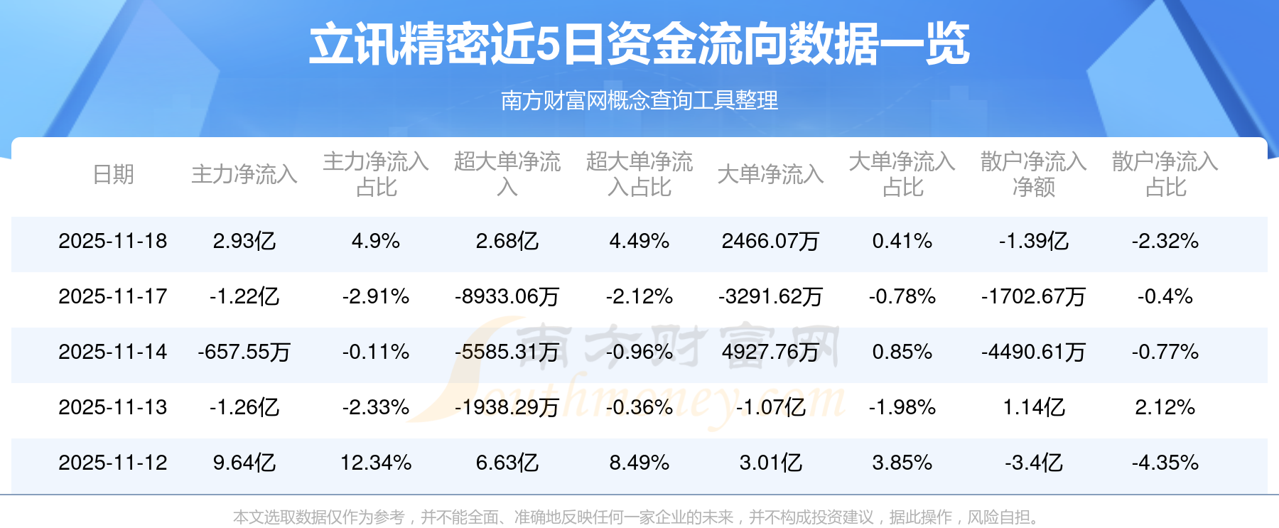 11月18日该股主力资金净流入2.93亿元,超大单资金净流入2.68亿元,大单资金净流入2466.07万元,中单资金净流出1.54亿元,散户资金净流出1.39亿元。