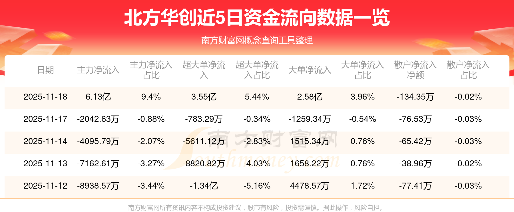 资金流向数据方面,11月18日主力资金净流流入6.13亿元,超大单资金净流入3.55亿元,大单资金净流入2.58亿元,散户资金净流出134.35万元。