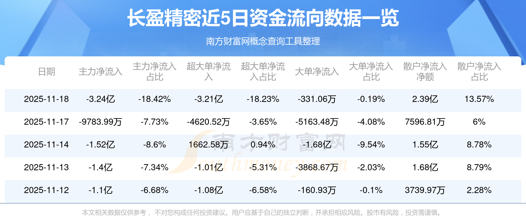 近5日资金流向一览见下表: