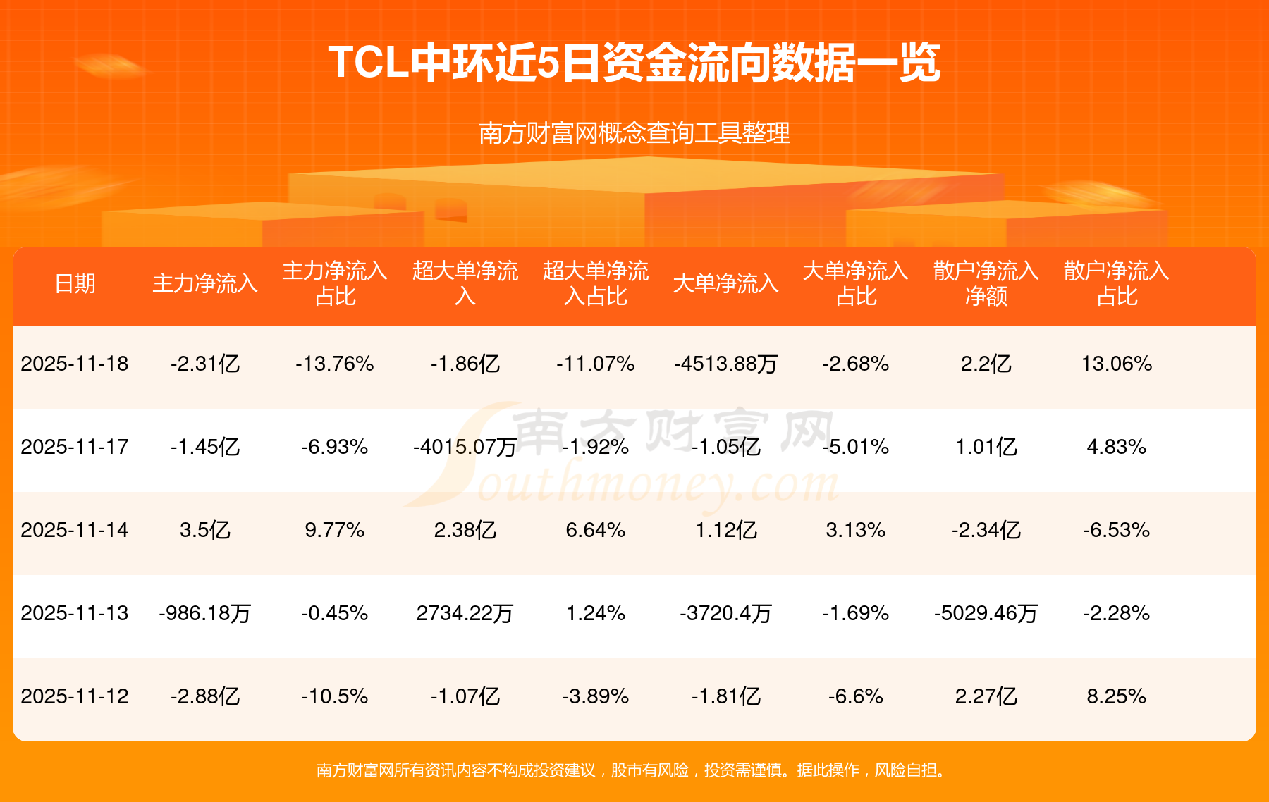 11月18日该股主力资金净流出2.31亿元,超大单资金净流出1.86亿元,大单资金净流出4513.88万元,中单资金净流入1178.58万元,散户资金净流入2.2亿元。