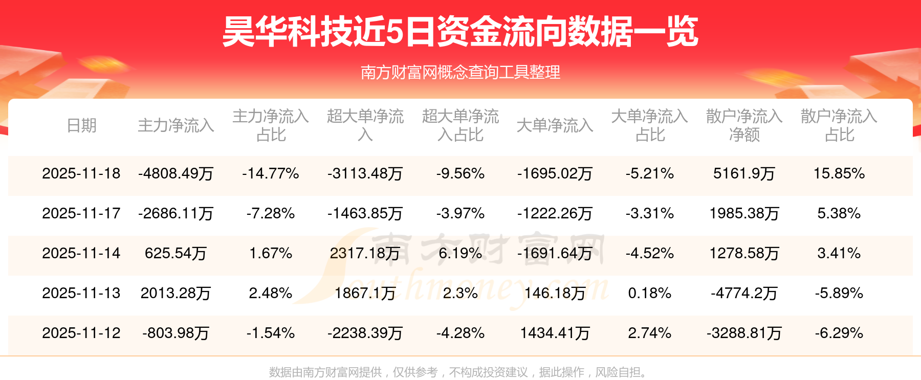 资金流向数据方面,11月18日主力资金净流流出4808.49万元,超大单资金净流出3113.48万元,大单资金净流出1695.02万元,散户资金净流入5161.9万元。