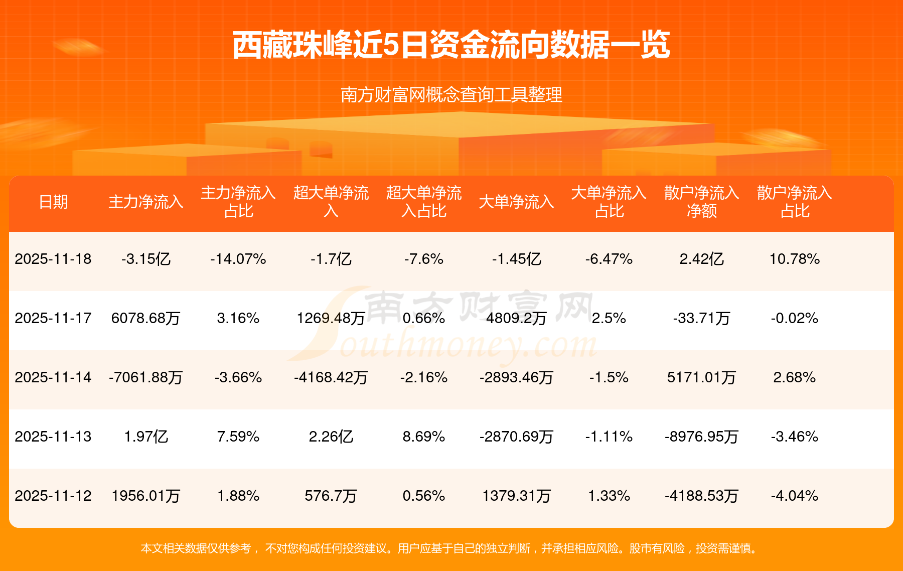 11月18日消息,西藏珠峰11月18日主力净流出3.15亿元,超大单净流出1.7亿元,大单净流出1.45亿元,散户净流入2.42亿元。