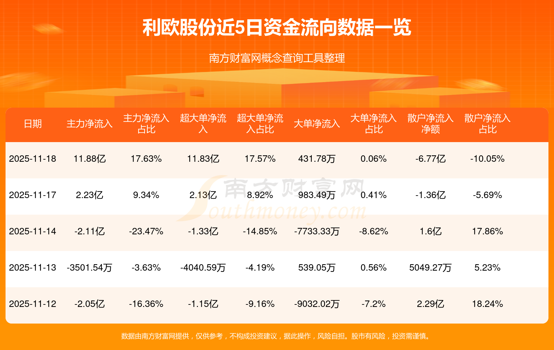 11月18日该股主力资金净流入11.88亿元,超大单资金净流入11.83亿元,大单资金净流入431.78万元,中单资金净流出5.11亿元,散户资金净流出6.77亿元。