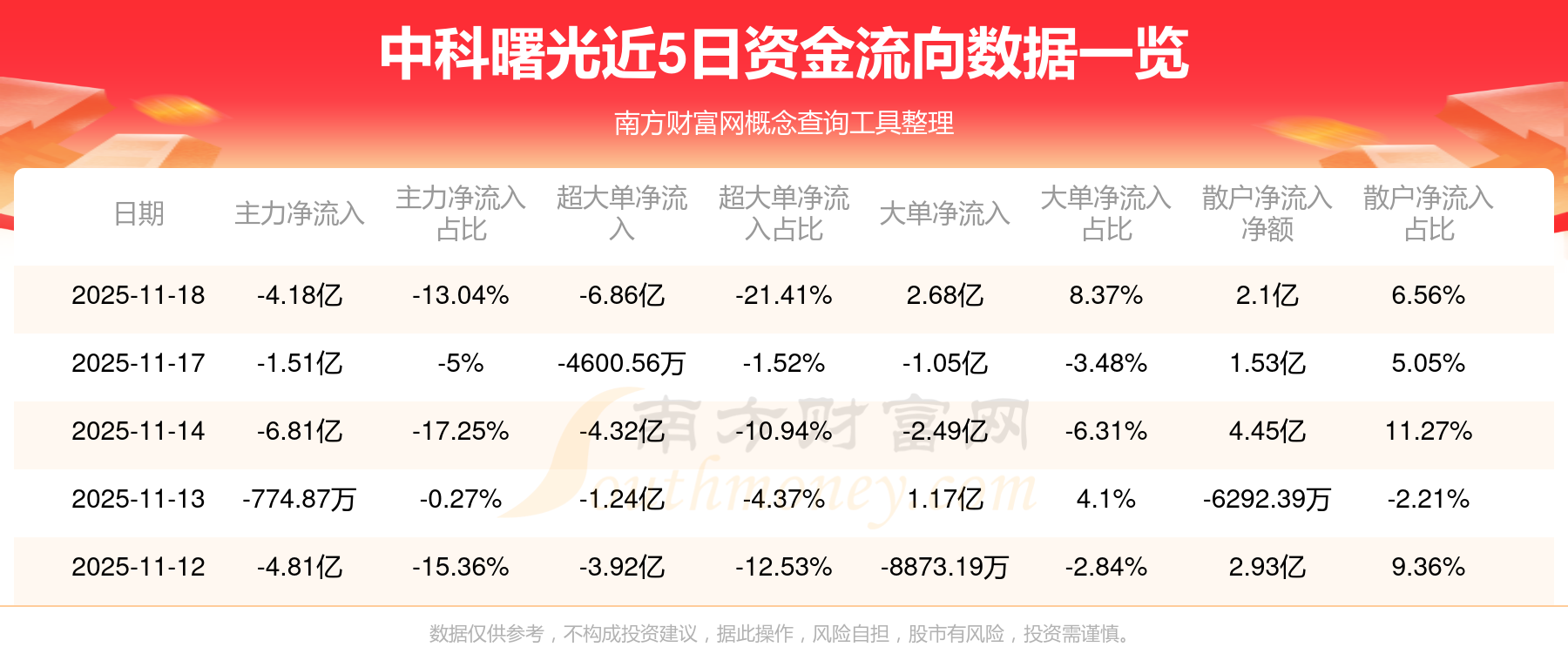 11月18日消息,资金净流出4.18亿元,超大单净流出6.86亿元,成交金额32.02亿元。