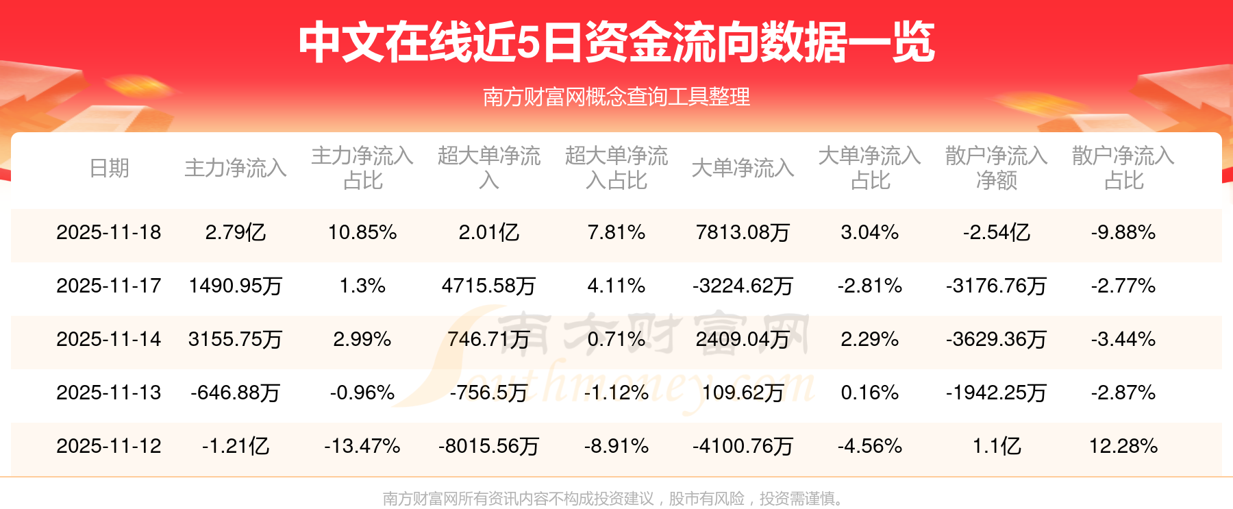 11月18日该股主力净入2.79亿元,其中资金流入方面:超大单净入4.54亿元,大单净入7.69亿元,中单净入8.34亿元,散户净入4.87亿元;资金流出方面:超大单净出2.53亿元,大单净出6.91亿元,中单净出8.59亿元,散户净出7.41亿元。
