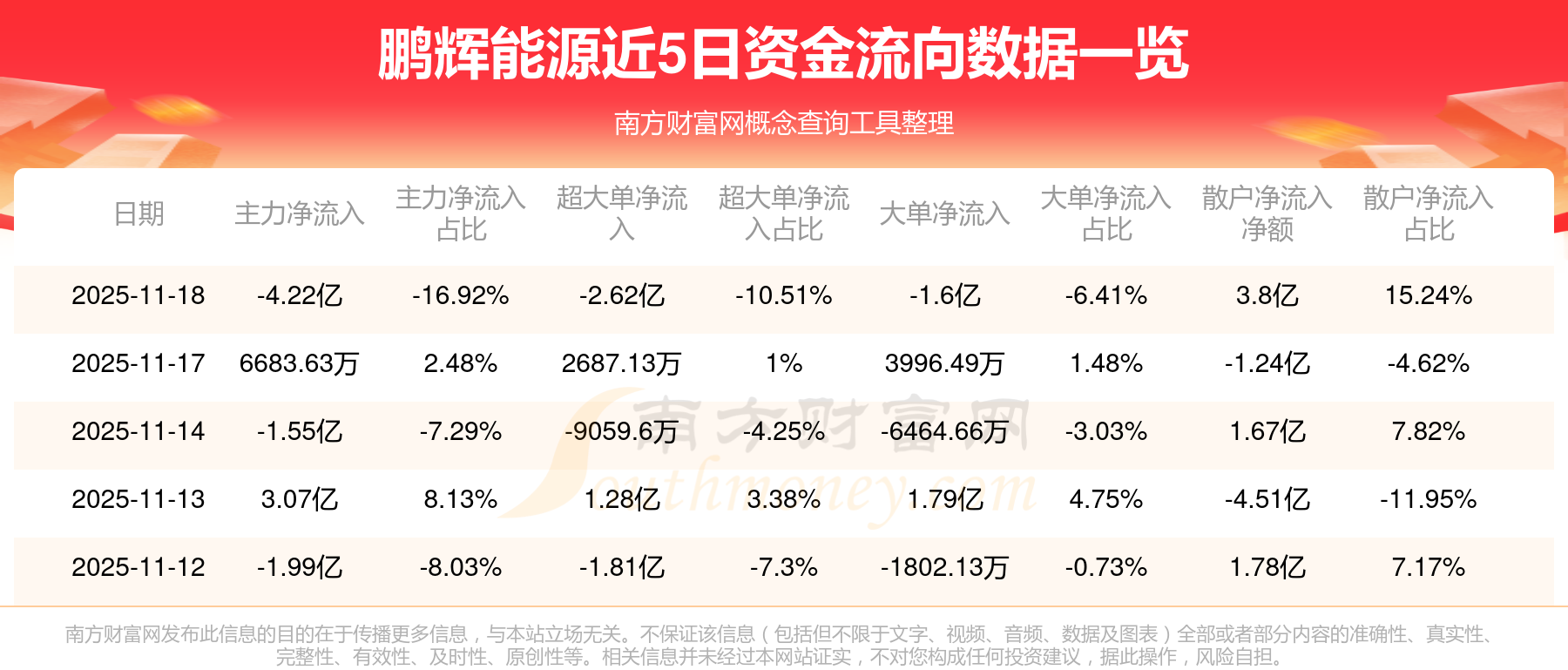 11月18日消息,鹏辉能源主力净流出4.22亿元,超大单净流出2.62亿元,散户净流入3.8亿元。