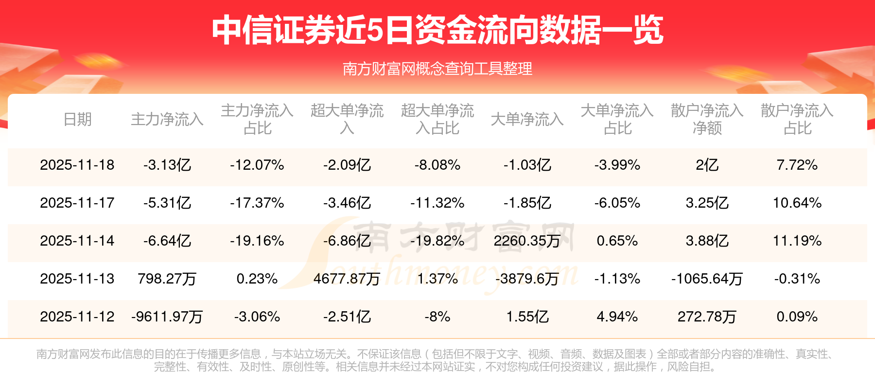 11月18日消息,中信证券主力净流出3.13亿元,超大单净流出2.09亿元,散户净流入2亿元。