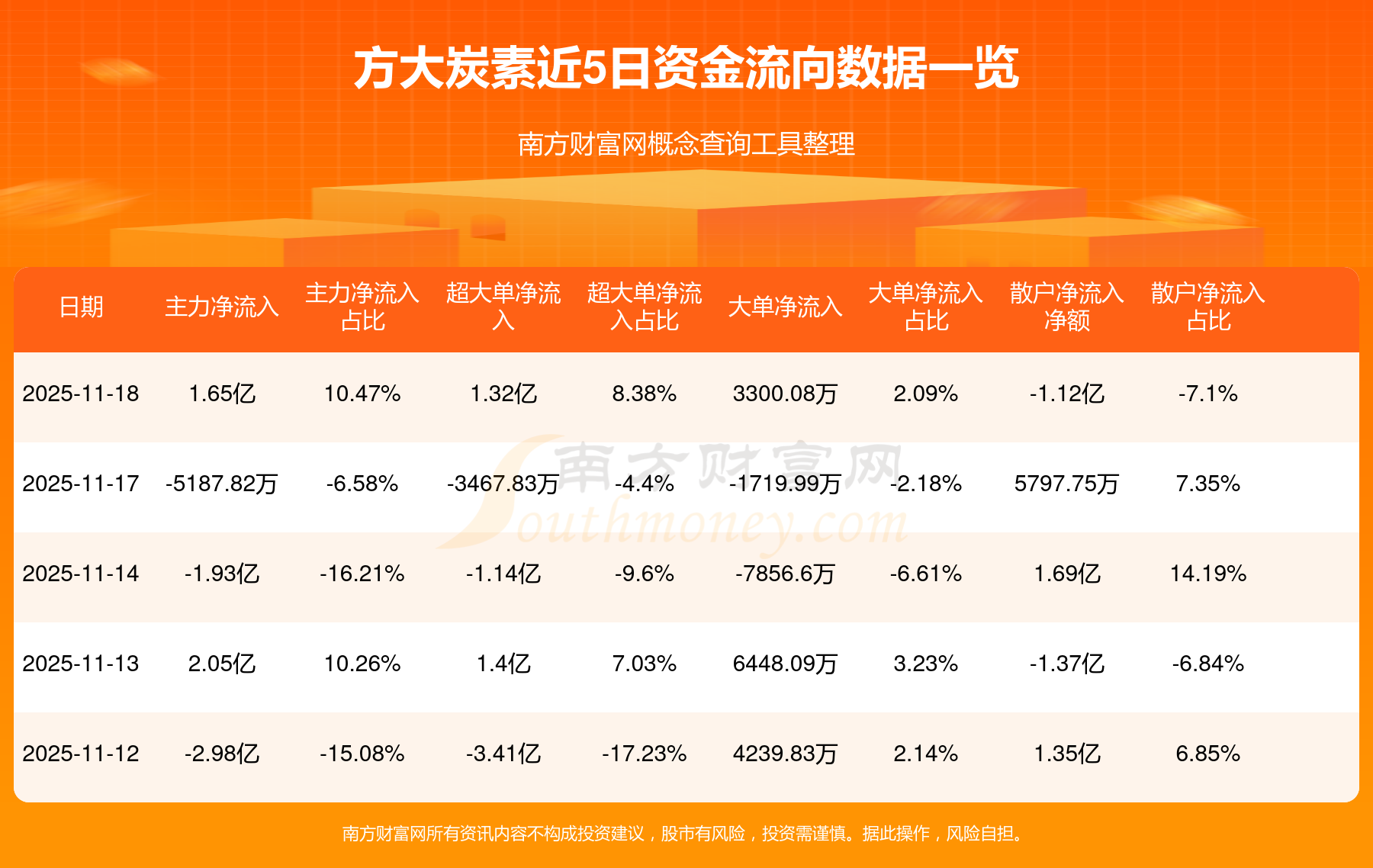 近5日资金流向一览见下表: