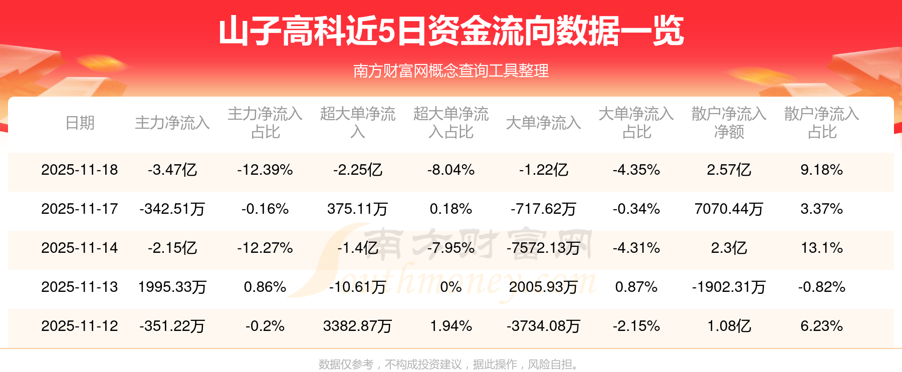 11月7日消息,山子高科(000981)开盘报3.75元,截至下午3点收盘,该股跌2.65%报3.460元,换手率8.3% ,成交额28.04亿元。