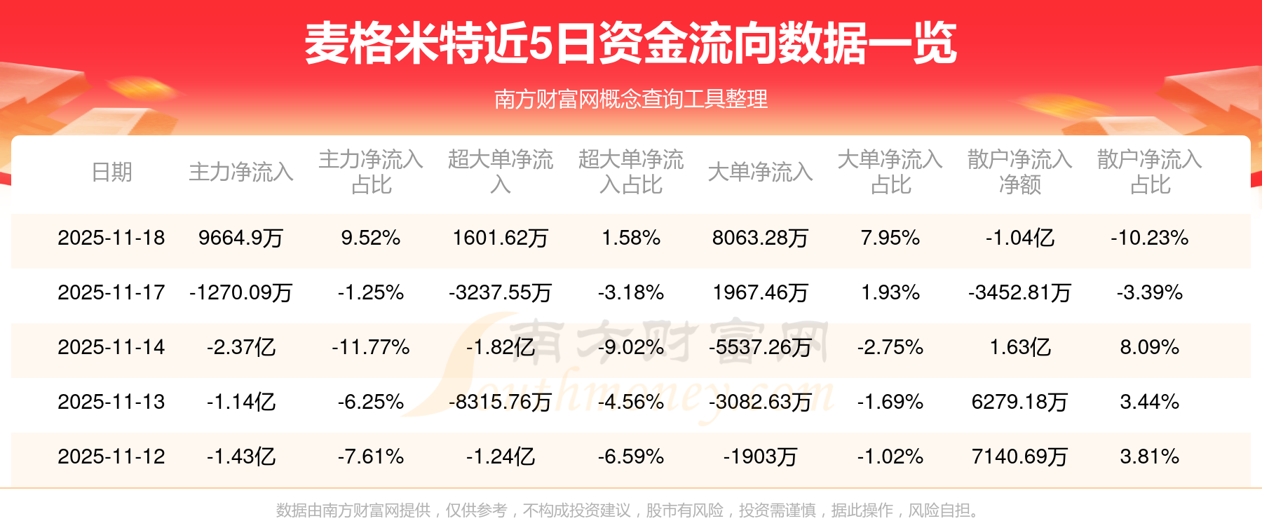 11月18日消息,麦格米特11月18日主力资金净流入9664.9万元,超大单资金净流入1601.62万元,大单资金净流入8063.28万元,散户资金净流出1.04亿元。