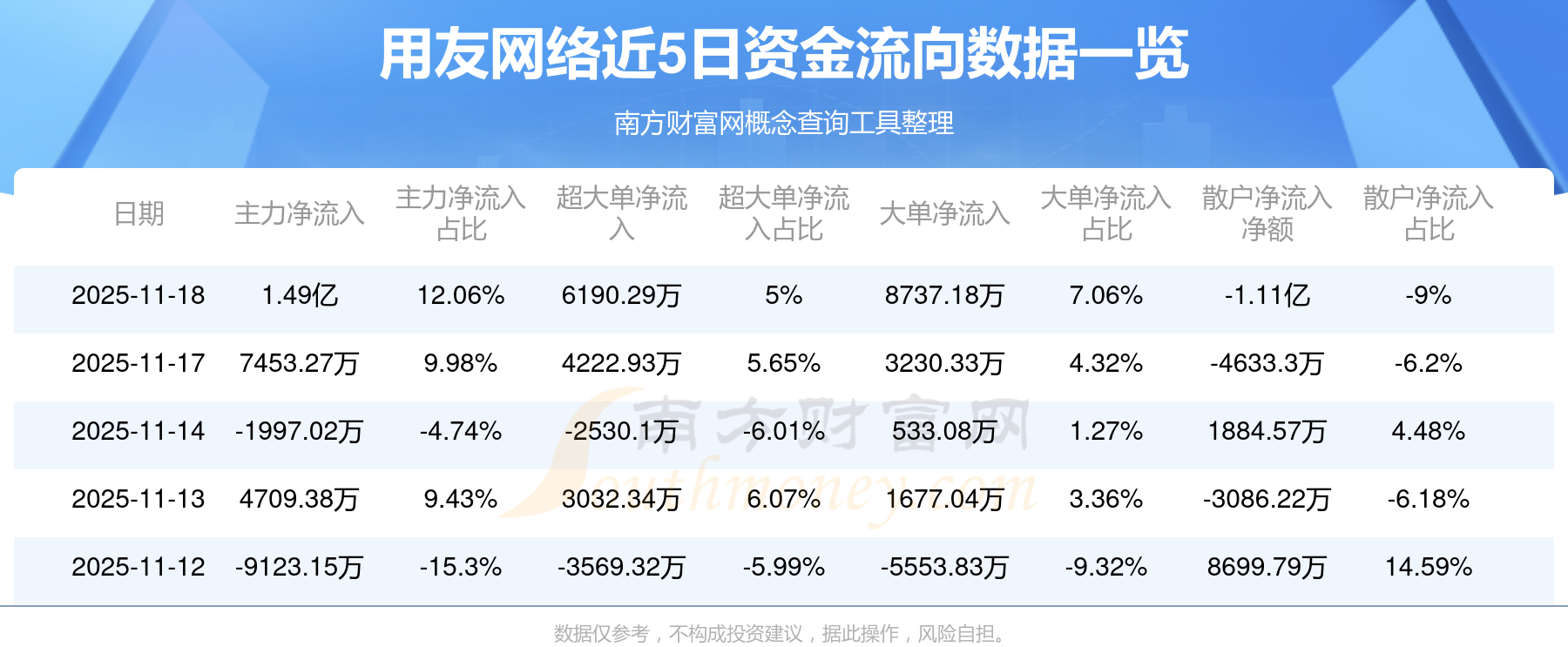 11月14日消息,用友网络今年来涨幅上涨28.28%,最新报14.960元,跌1.04%,成交额12.38亿元。