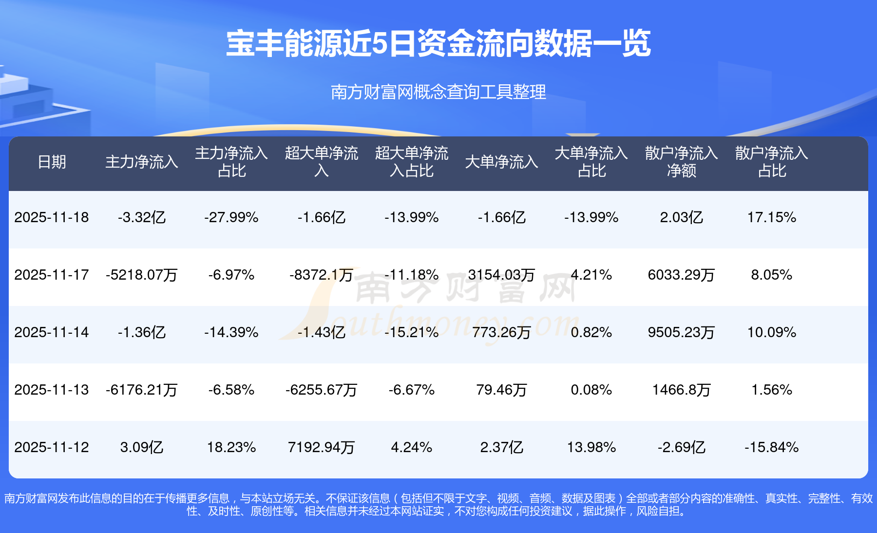 11月18日消息,宝丰能源主力净流出3.32亿元,超大单净流出1.66亿元,散户净流入2.03亿元。