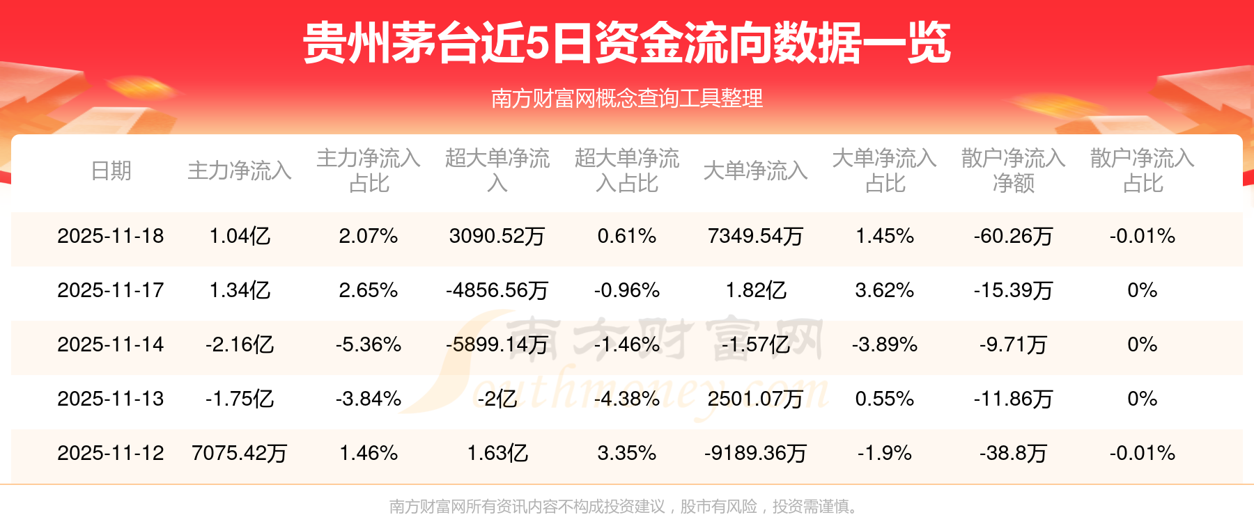 近5日资金流向一览见下表: