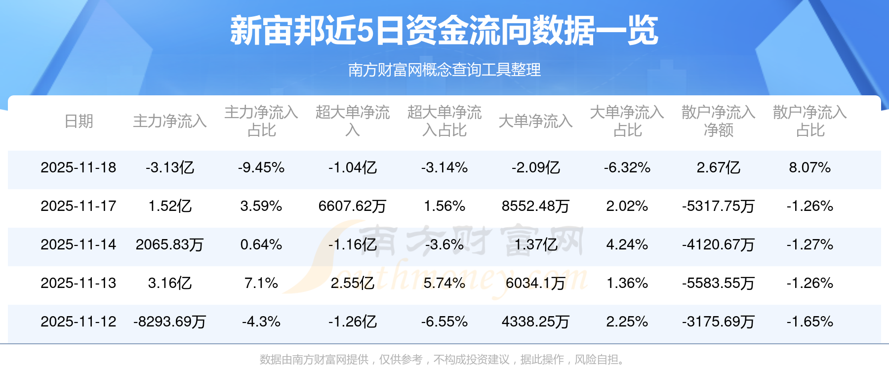 11月18日消息,新宙邦主力资金净流出3.13亿元,超大单资金净流出1.04亿元,散户资金净流入2.67亿元。