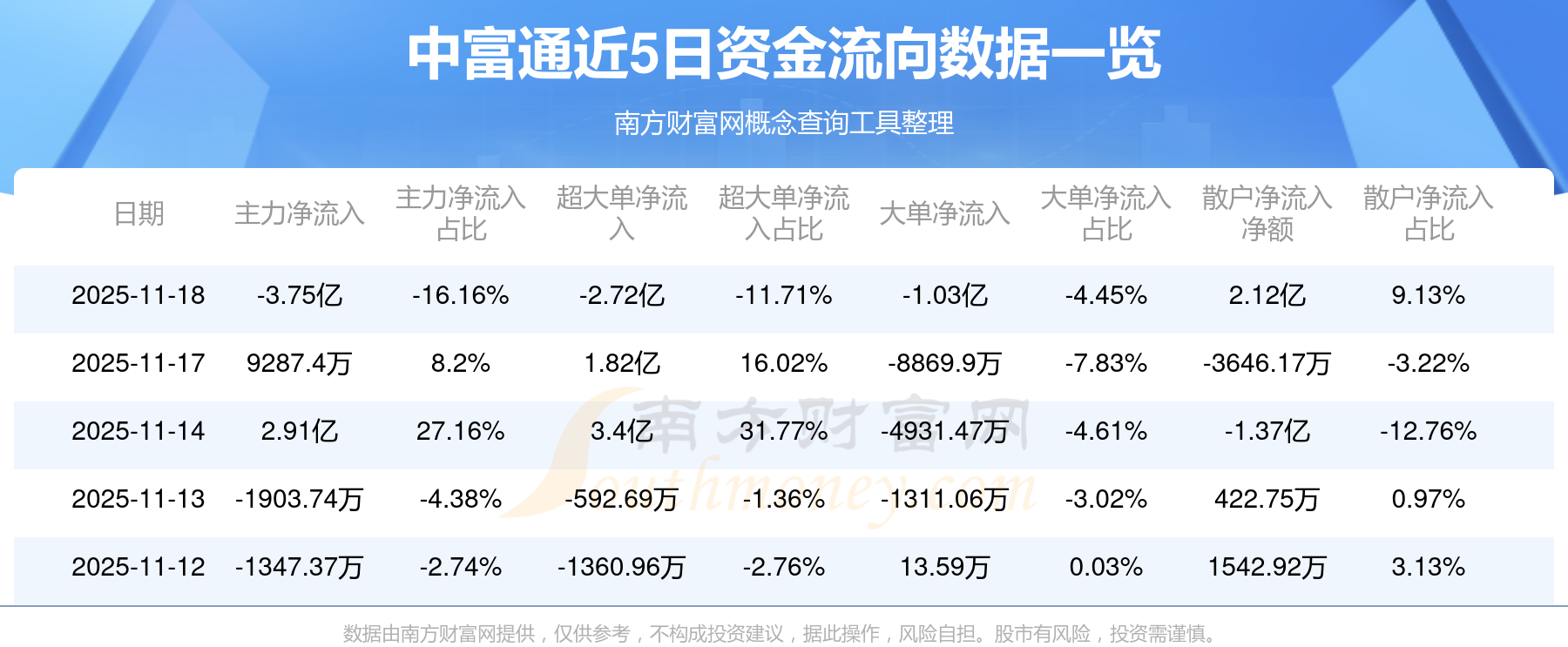 11月18日该股主力净流出3.75亿元,超大单净流出2.72亿元,大单净流出1.03亿元,中单净流入1.63亿元,散户净流入2.12亿元。