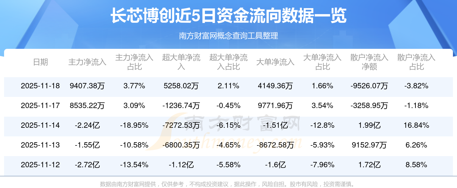 资金流向数据方面,11月18日主力资金净流流入9407.38万元,超大单资金净流入5258.02万元,大单资金净流入4149.36万元,散户资金净流出9526.07万元。