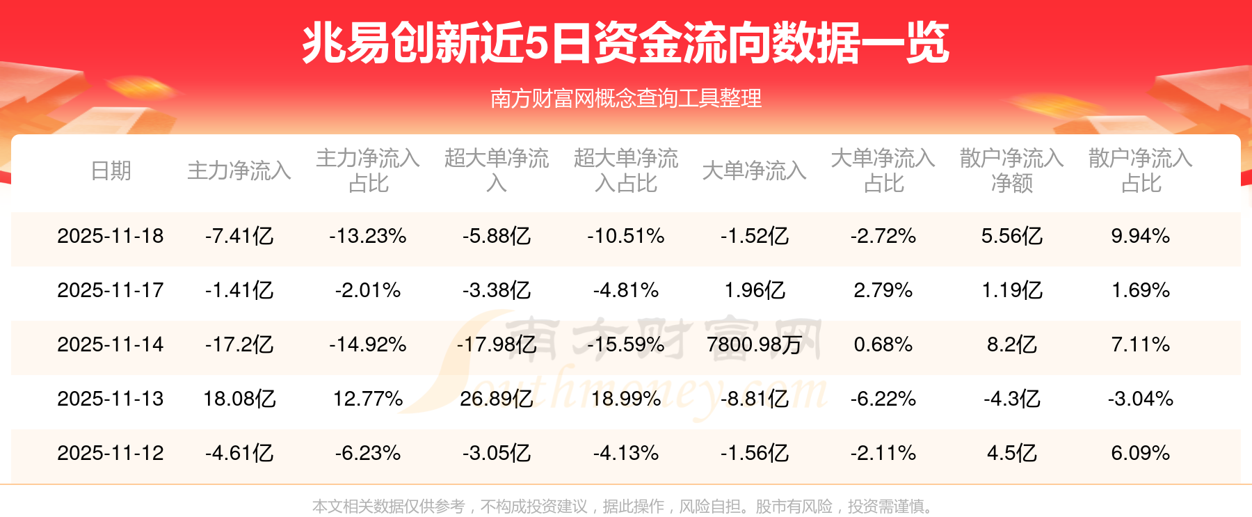 11月18日该股主力净流出7.41亿元,超大单净流出5.88亿元,大单净流出1.52亿元,中单净流入1.84亿元,散户净流入5.56亿元。