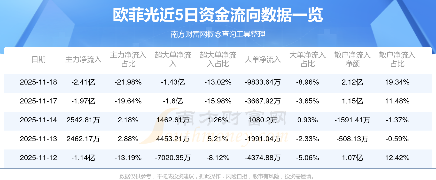 近5日资金流向一览见下表: