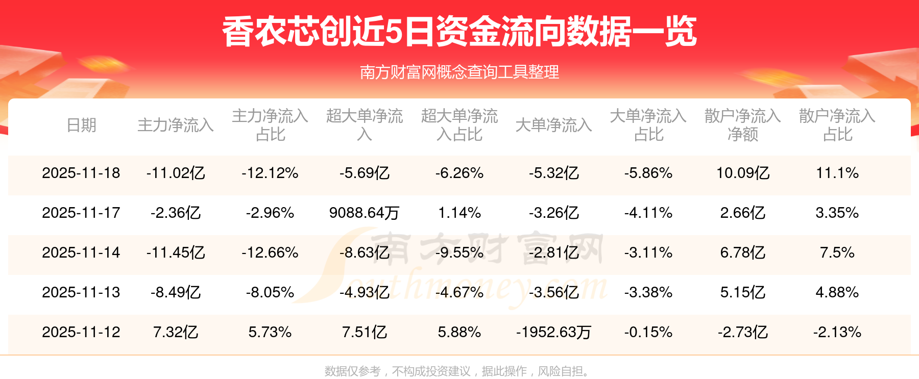 近5日资金流向一览见下表: