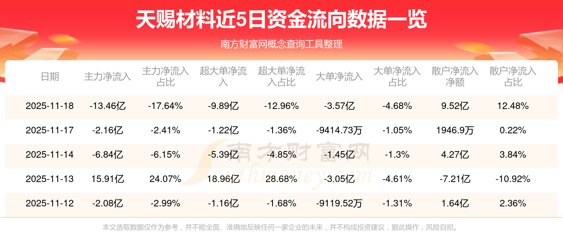 近5日资金流向一览见下表: