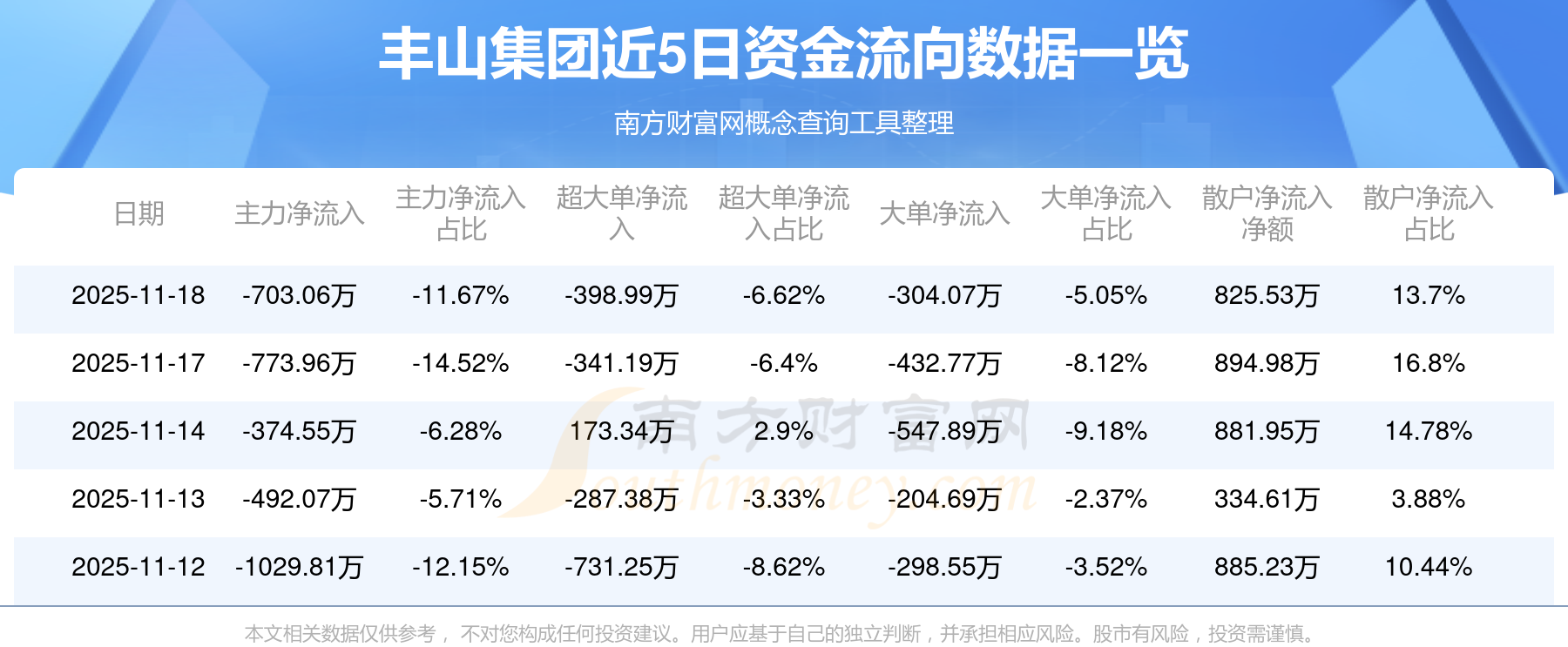 11月18日消息,丰山集团资金净流出703.06万元,超大单资金净流出398.99万元,换手率0.92%,成交金额2676.51万元。