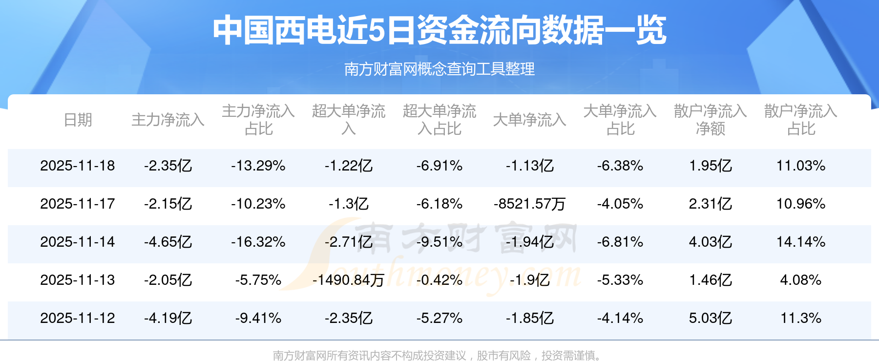 11月18日消息,资金净流出2.35亿元,超大单资金净流出1.22亿元,成交金额11.11亿元。