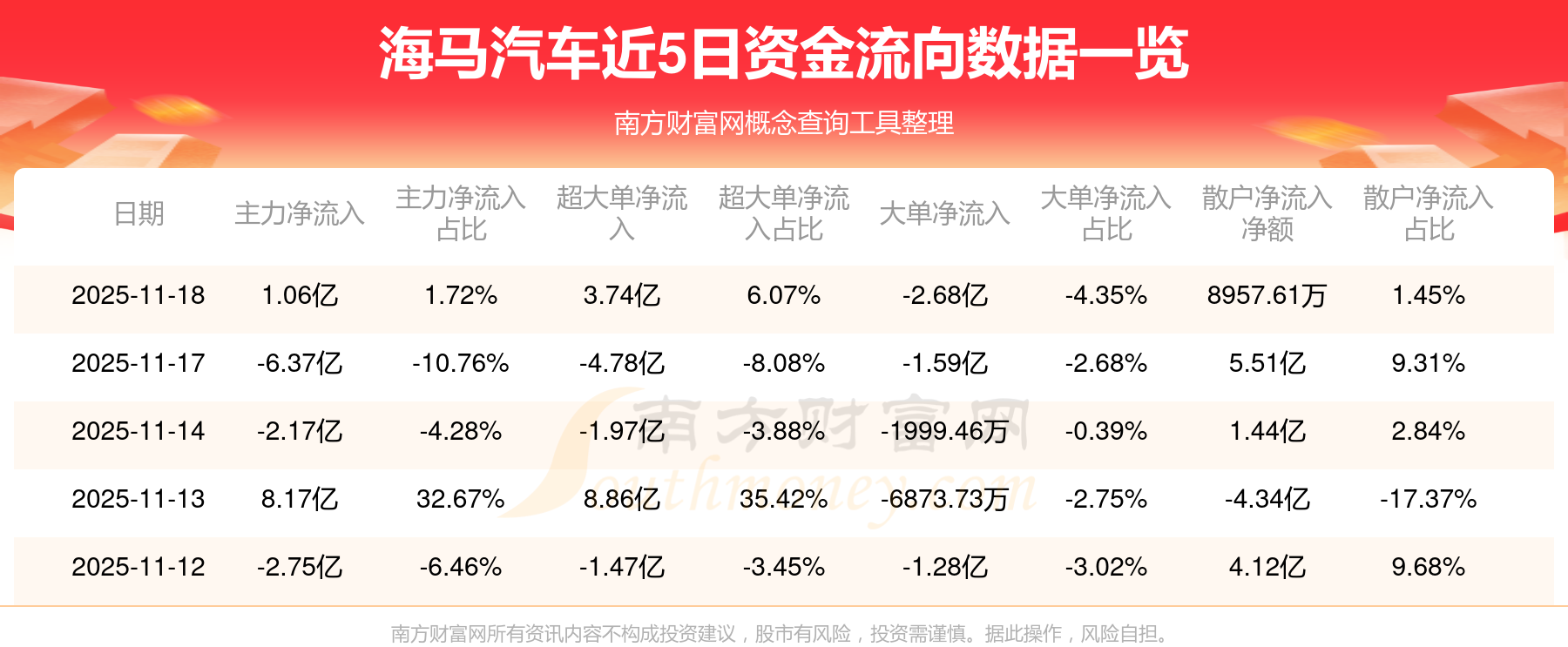 近5日资金流向一览见下表: