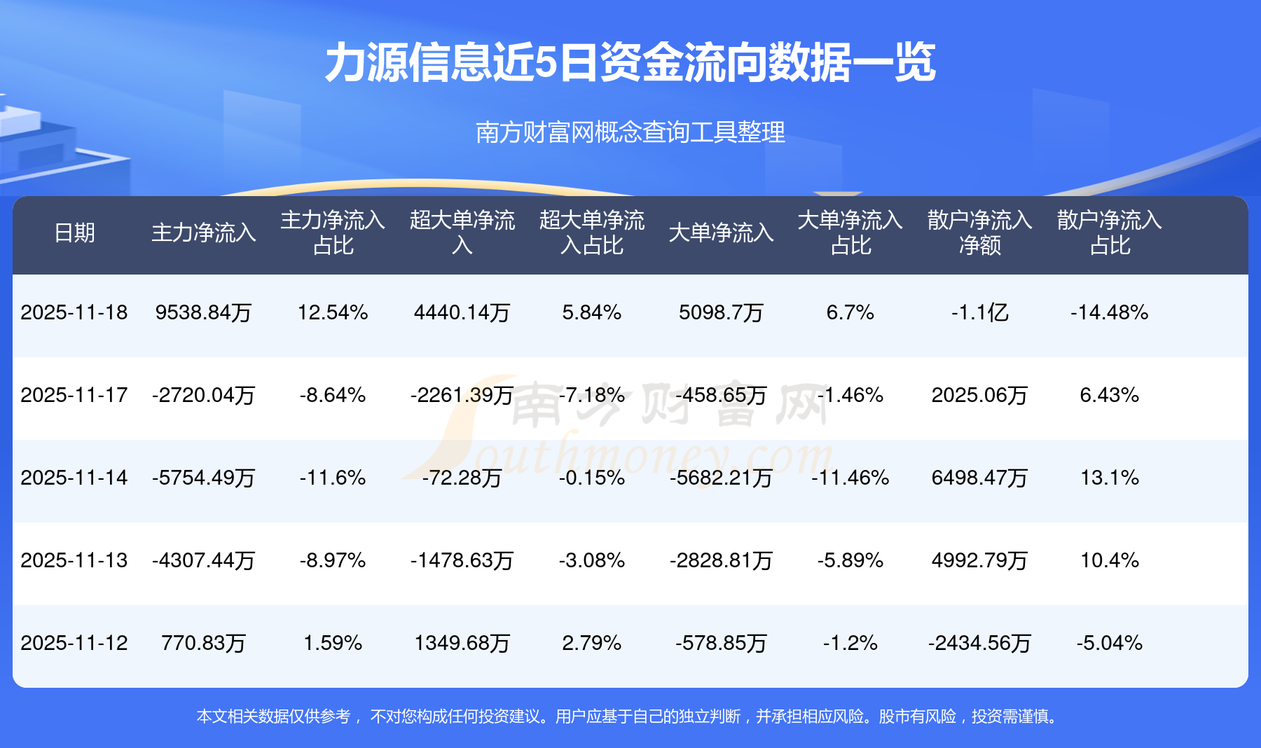 11月18日该股主力净流入9538.84万元,超大单净流入4440.14万元,大单净流入5098.7万元,中单净流入1478.4万元,散户净流出1.1亿元。