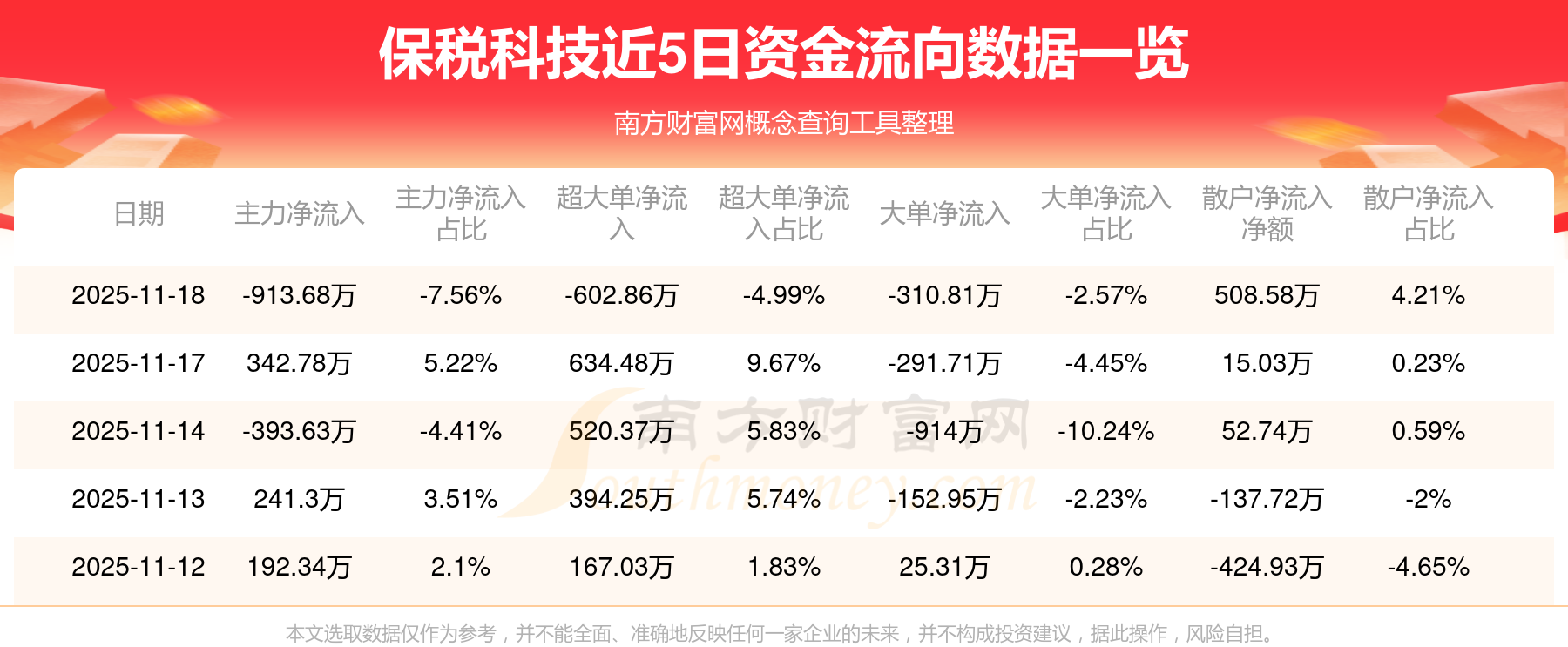 资金流向数据方面,11月18日主力资金净流流出913.68万元,超大单资金净流出602.86万元,大单资金净流出310.81万元,散户资金净流入508.58万元。