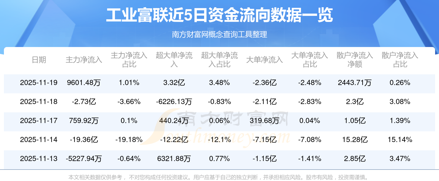 11月19日消息,资金净流入9601.48万元,超大单资金净流入3.32亿元,成交金额95.33亿元。