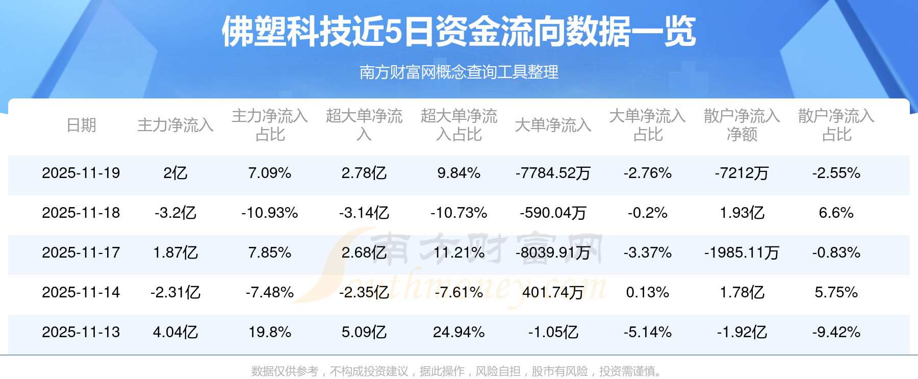 11月19日消息,佛塑科技11月19日主力净流入2亿元,超大单净流入2.78亿元,大单净流出7784.52万元,散户净流出7212万元。