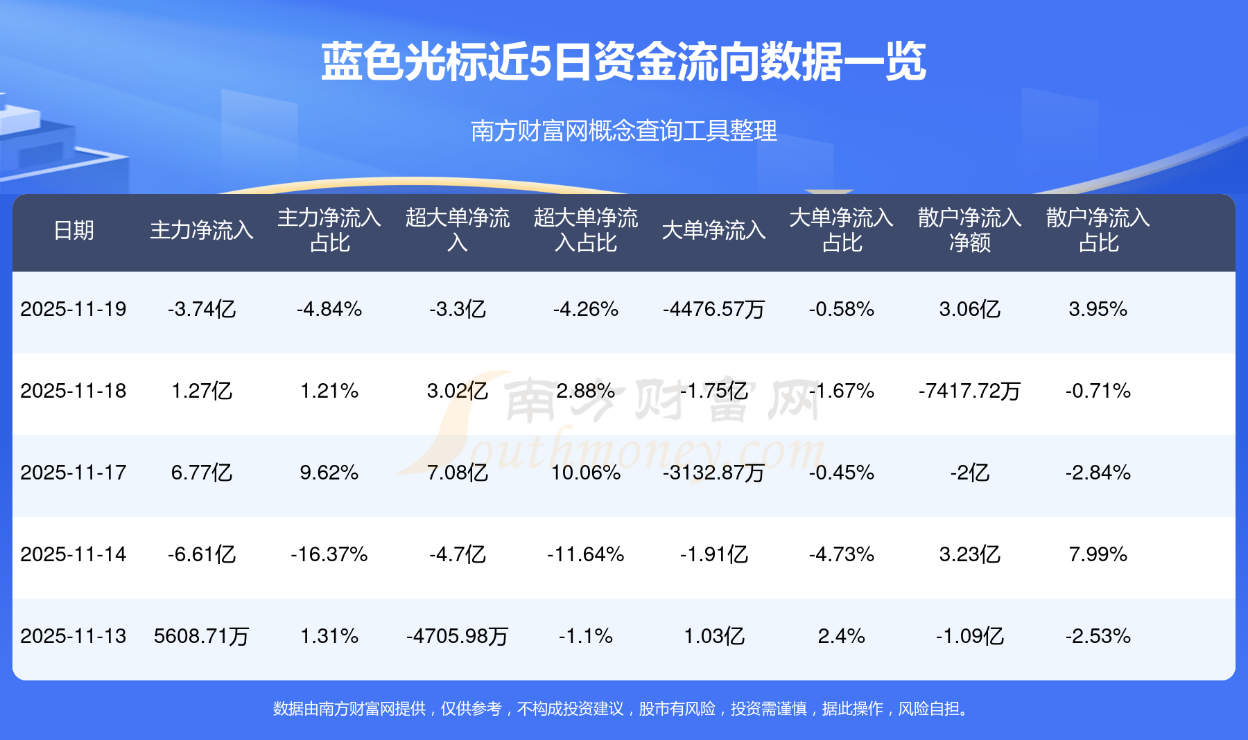 近5日资金流向一览见下表: