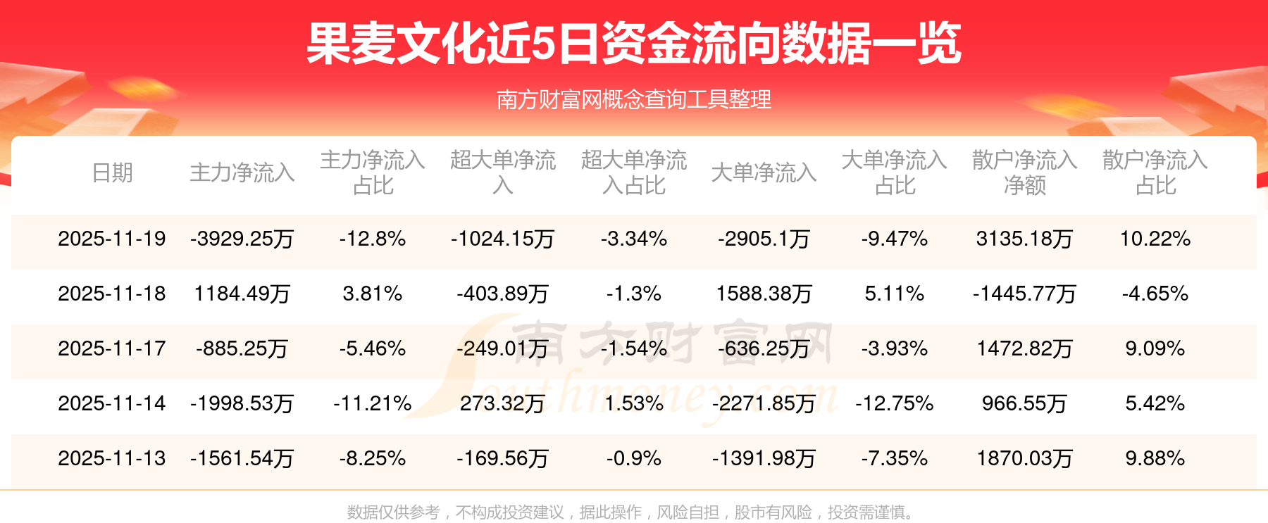 近5日资金流向一览见下表: