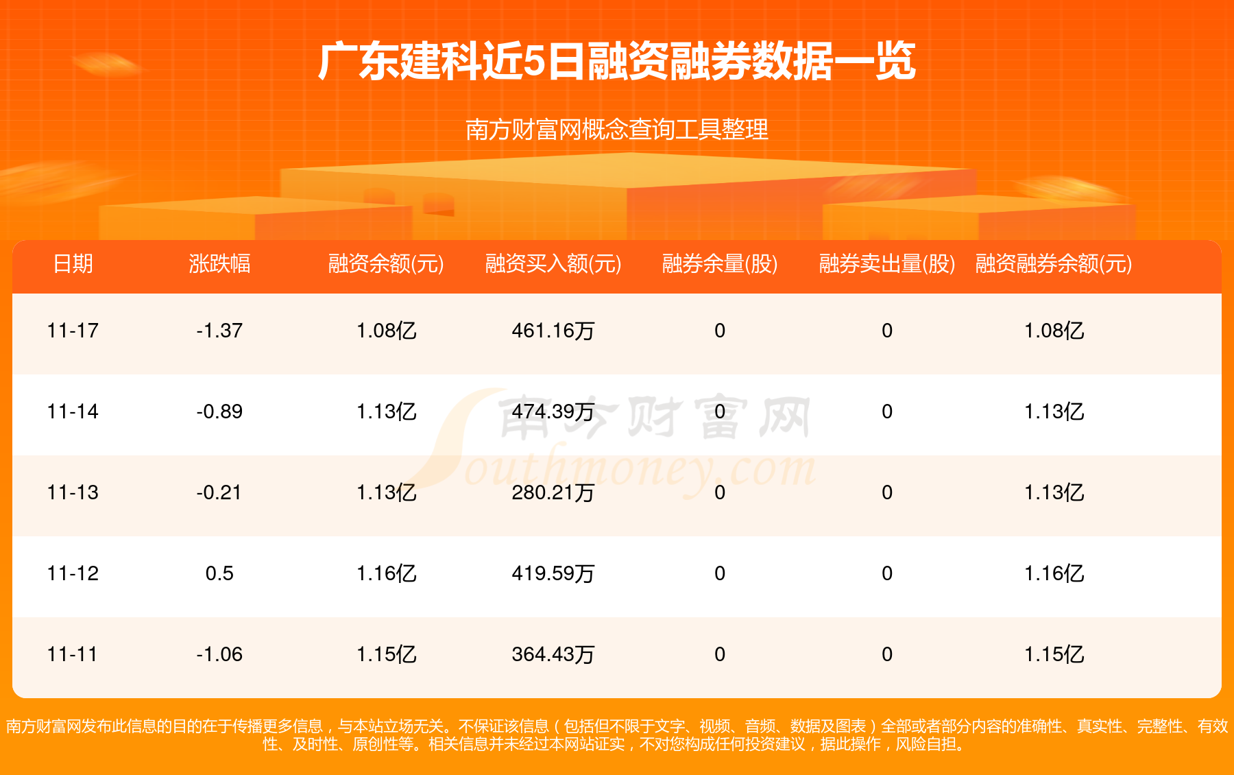 11月17日广东建科融券信息显示,融资方面,当日融资买入461.16万元,融资偿还925.13万元,融资净买额-463.97万元。近5日融资融券数据一览见下表: